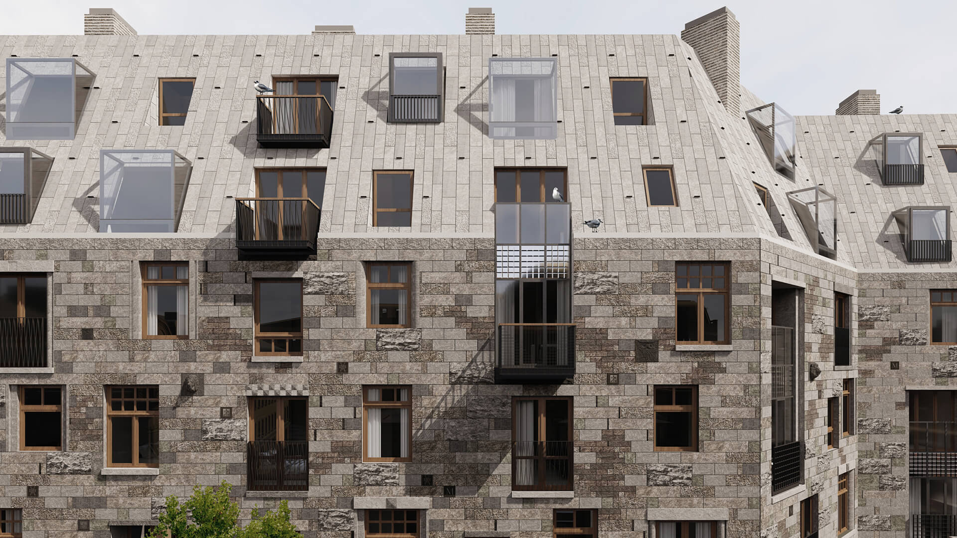 В комплексе, состоящем из восьми этажей, представлены различные варианты планировок от 45 до 313 м². Они расположены в новых корпусах и исторических зданиях, откуда открываются панорамные виды на водную гладь, а также имеют мансардные окна и французские балконы. Среди них есть уникальные квартиры с просторными террасами на крыше и с патио в приватном саду.