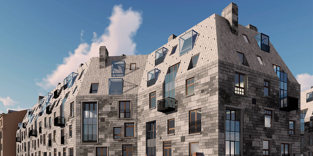 В комплексе, состоящем из восьми этажей, представлены различные варианты планировок от 45 до 313 м². Они расположены в новых корпусах и исторических зданиях, откуда открываются панорамные виды на водную гладь, а также имеют мансардные окна и французские балконы. Среди них есть уникальные квартиры с просторными террасами на крыше и с патио в приватном саду.
