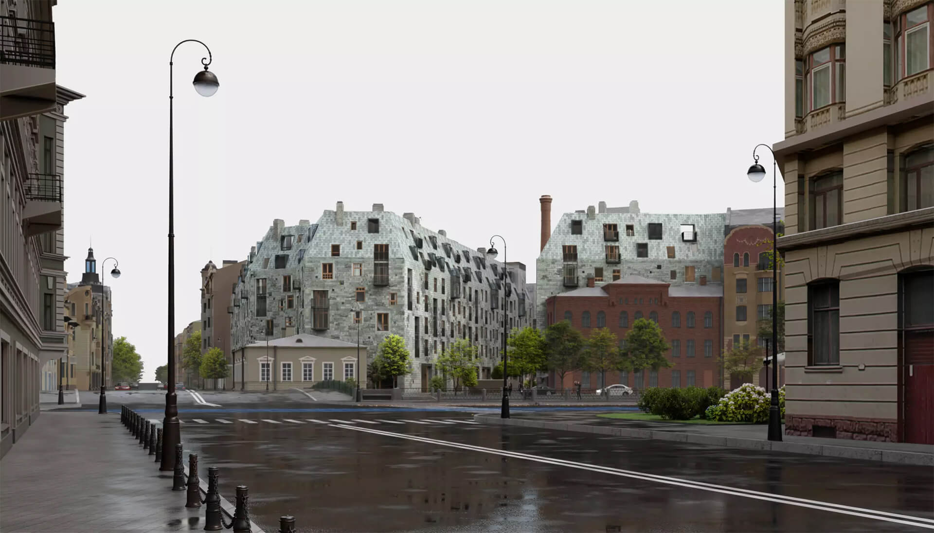 Особое внимание уделено сохранению исторического наследия. Часть комплекса расположена в реконструированных зданиях XIX века, таких как бывшая мебельно-столярная фабрика Мельцера и здание кинематографа "Гранд-Палас". Это позволяет сохранить уникальную атмосферу старого города, сочетая ее с современными архитектурными решениями.